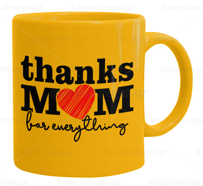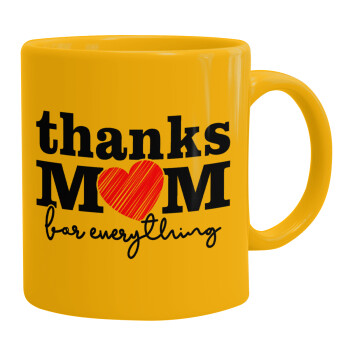 Thanks mom for everything, Ceramic coffee mug yellow, 330ml