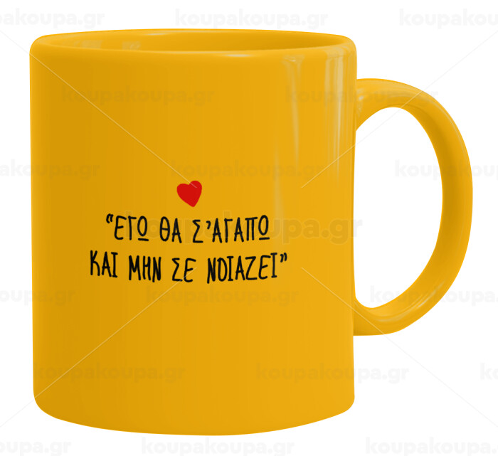 ΕΓΩ ΘΑ Σ’ΑΓΑΠΩ ΚΑΙ ΜΗΝ ΣΕ ΝΟΙΑΖΕΙ..., Ceramic coffee mug yellow, 330ml