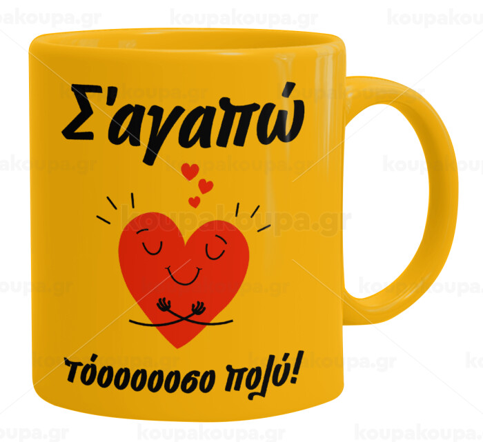 Σ΄αγαπώ τόοοοσο πολύ καρδιά, Ceramic coffee mug yellow, 330ml