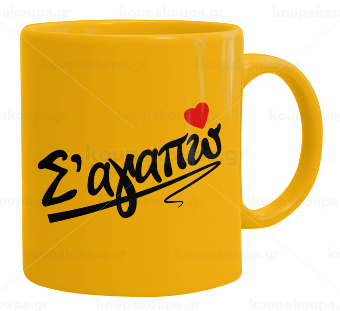 Σ΄ αγαπώ!!!, Ceramic coffee mug yellow, 330ml
