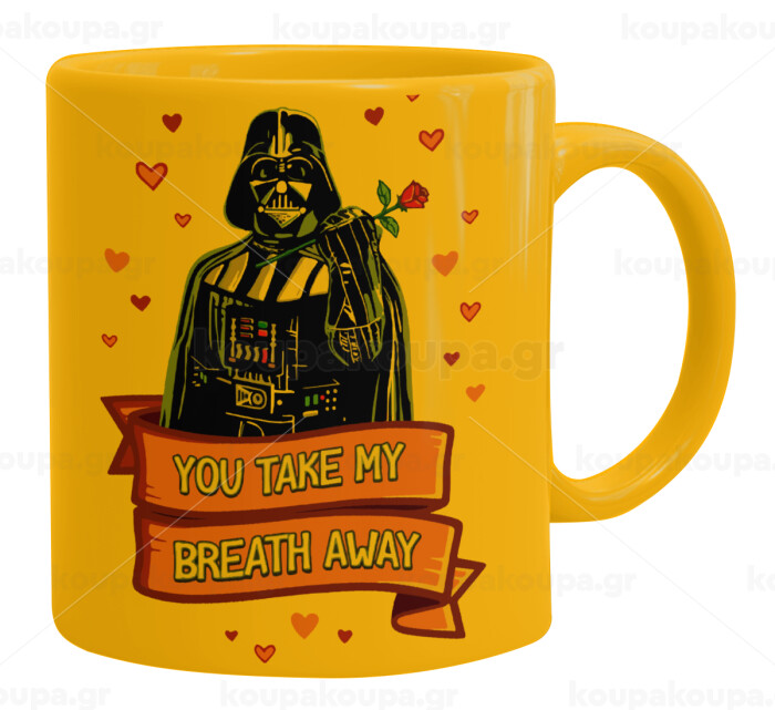 Darth Vader, you take my breath away, Ceramic coffee mug yellow, 330ml