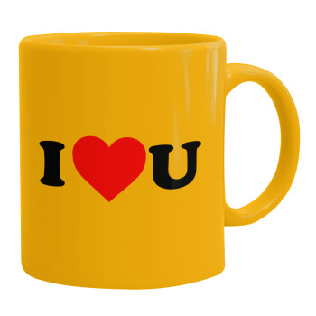 I ❤️ U, Ceramic coffee mug yellow, 330ml