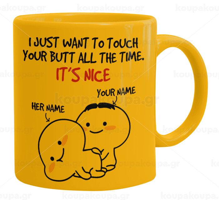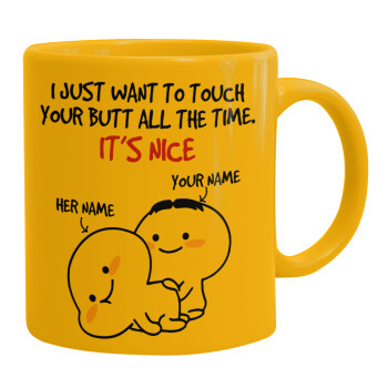 I Just Want To Touch Your Butt All The Time, Ceramic coffee mug yellow, 330ml