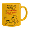 Just in case no one told you today..., Ceramic coffee mug yellow, 330ml