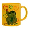 Lilo & Stitch painting, Ceramic coffee mug yellow, 330ml