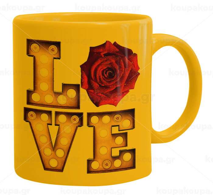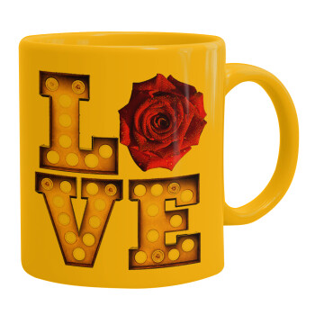 Love lights and roses, Ceramic coffee mug yellow, 330ml