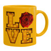 Love lights and roses, Ceramic coffee mug yellow, 330ml