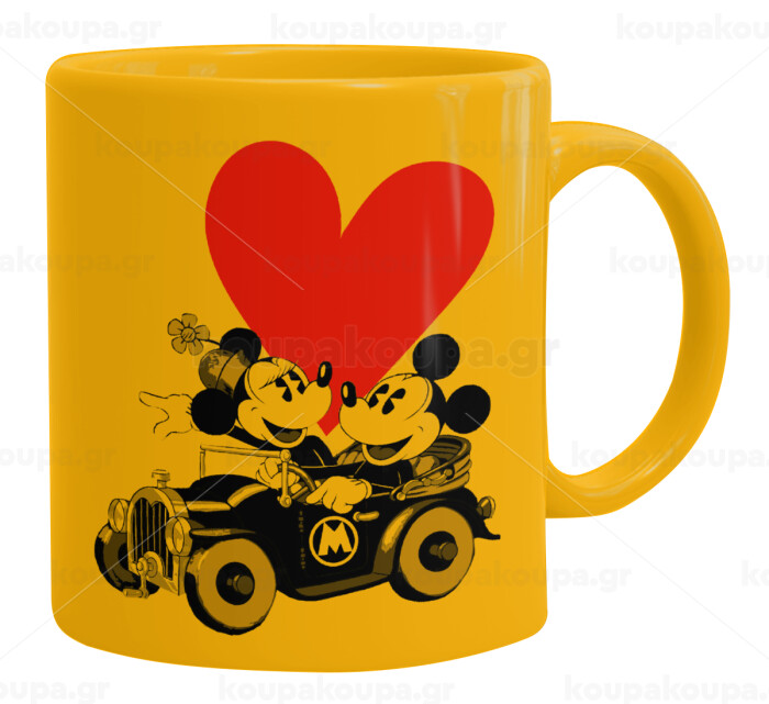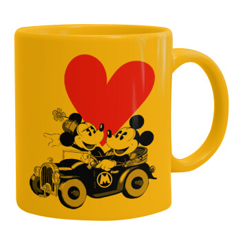 Mickey & Minnie love car, Ceramic coffee mug yellow, 330ml