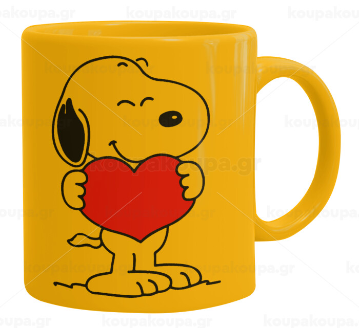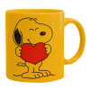 Snoopy takemy heart, Ceramic coffee mug yellow, 330ml