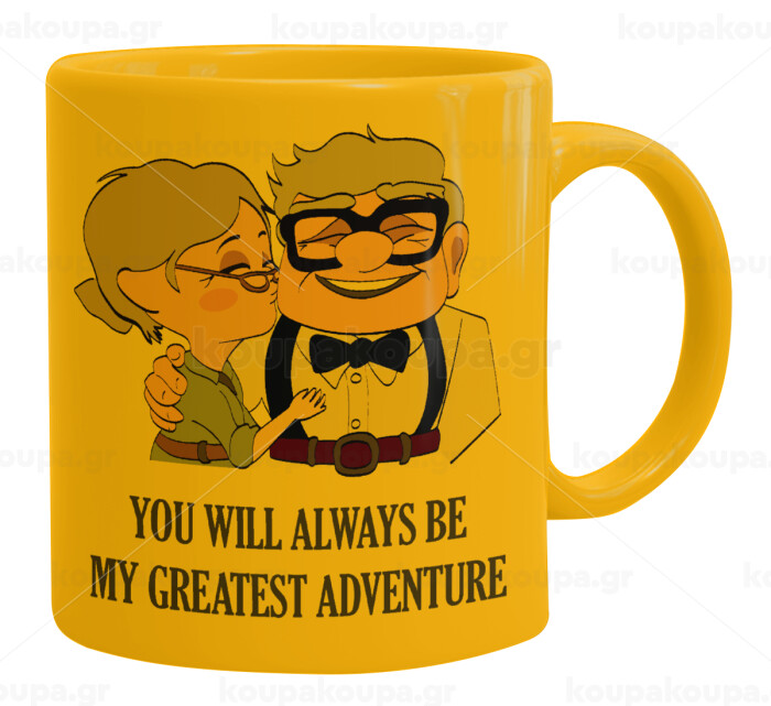 UP, YOU WILL ALWAYS BE MY GREATEST ADVENTURE, Ceramic coffee mug yellow, 330ml
