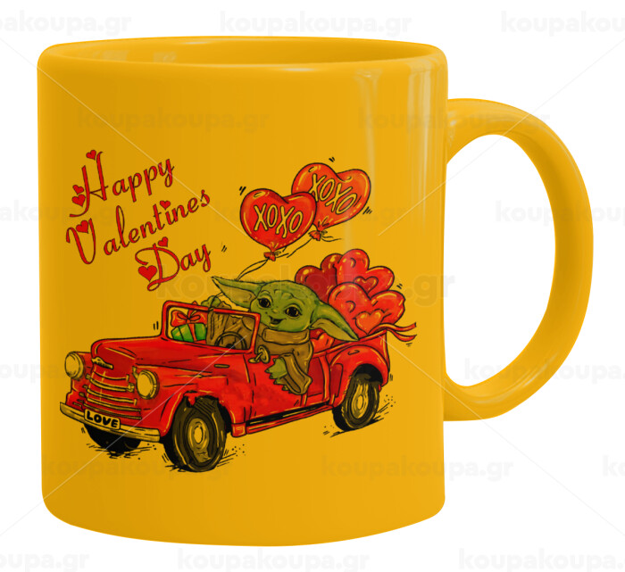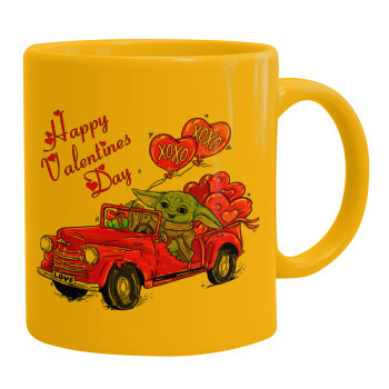 Yoda, happy valentines day (xoxo), Ceramic coffee mug yellow, 330ml