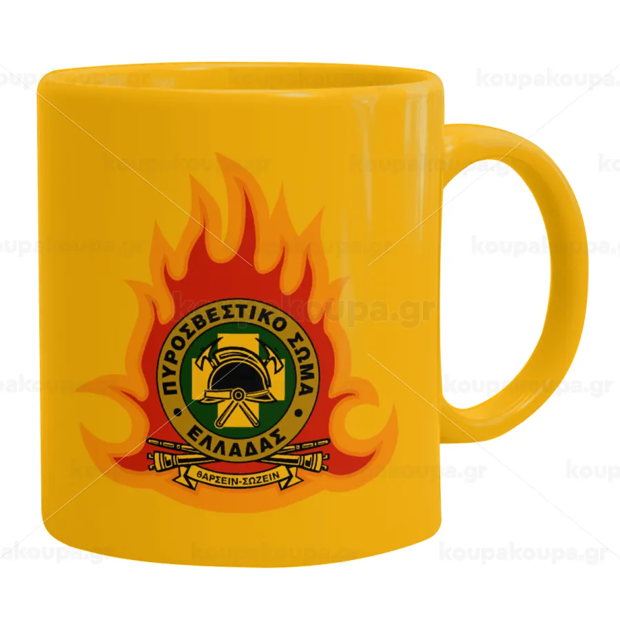 Πυροσβεστικό σώμα Ελλάδος σκούρο, Ceramic coffee mug yellow, 330ml