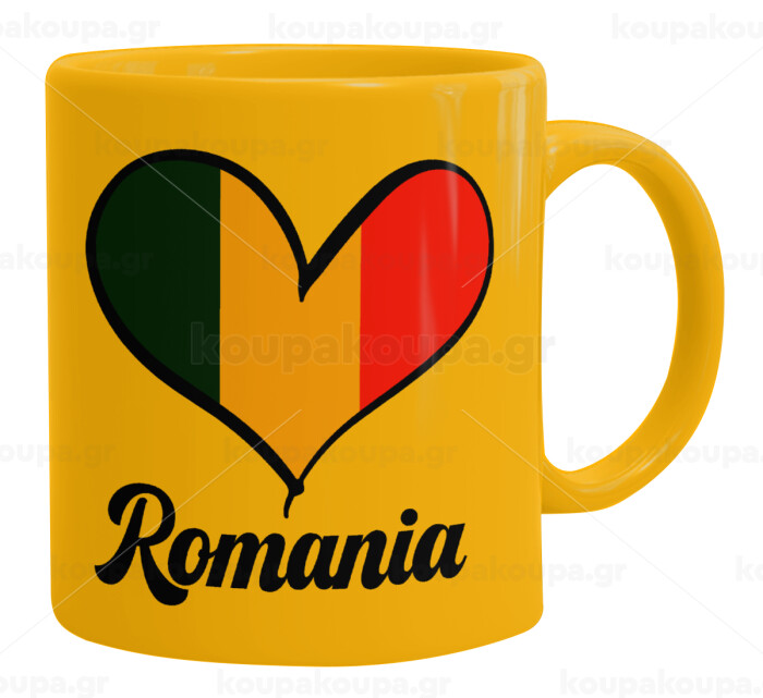 Romania flag, Ceramic coffee mug yellow, 330ml