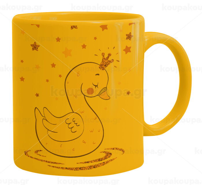 Crowned swan, Ceramic coffee mug yellow, 330ml