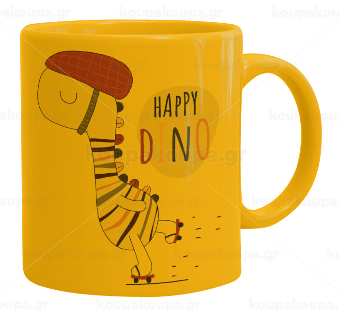 Happy Dino, Ceramic coffee mug yellow, 330ml