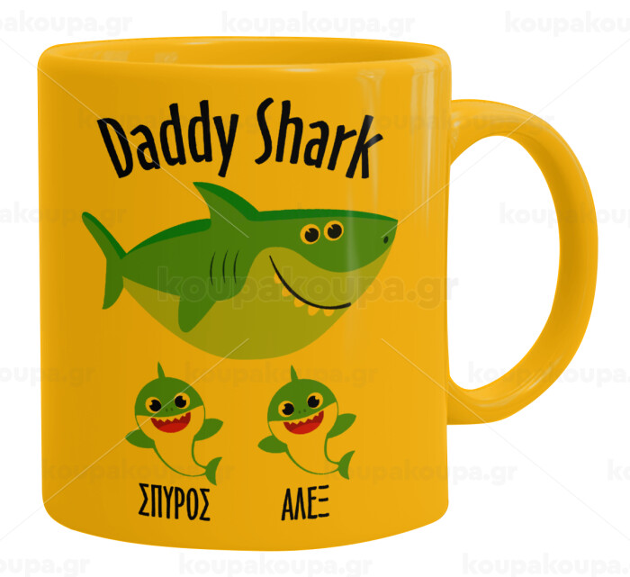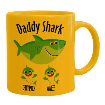 Daddy Shark (με ονόματα παιδικά), Ceramic coffee mug yellow, 330ml