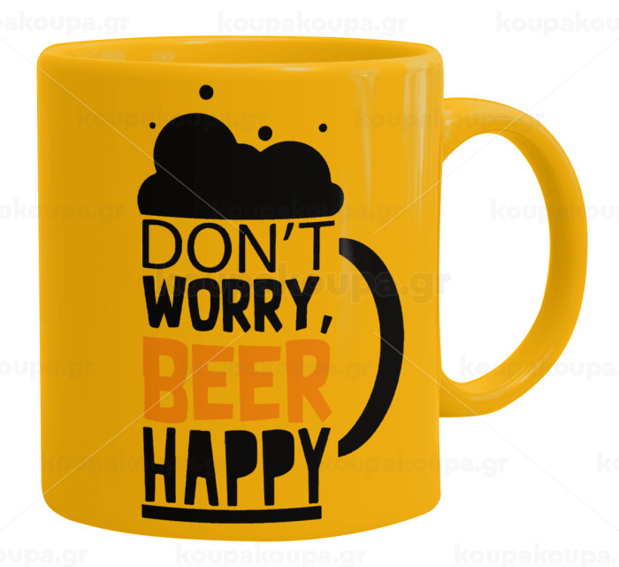 Don't worry BEER Happy, Ceramic coffee mug yellow, 330ml