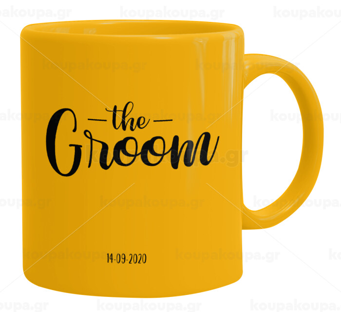 Groom & Bride (Groom), Ceramic coffee mug yellow, 330ml