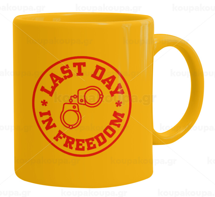 Last day freedom, Ceramic coffee mug yellow, 330ml