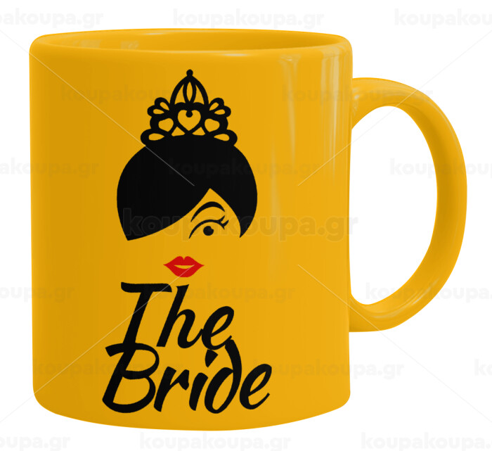 The Bride red kiss, Ceramic coffee mug yellow, 330ml