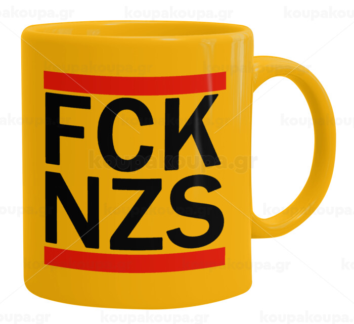 FCK NZS, Ceramic coffee mug yellow, 330ml