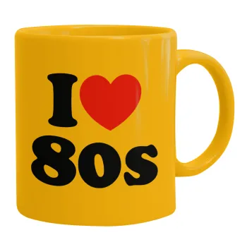 I Love 80s, Ceramic coffee mug yellow, 330ml