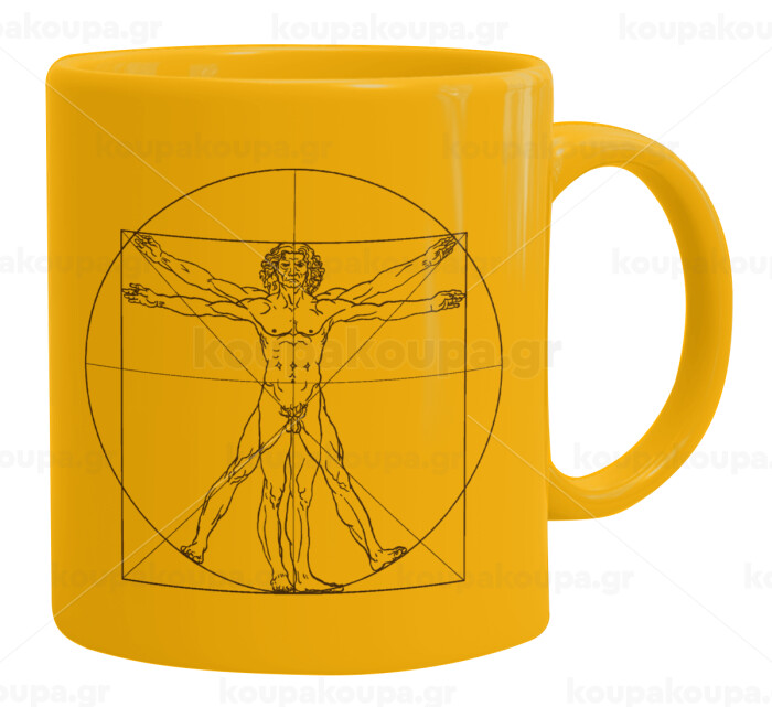 Leonardo da vinci Vitruvian Man, Ceramic coffee mug yellow, 330ml