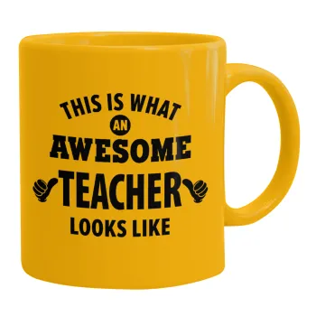 This is what an awesome teacher looks like hands!!! , Ceramic coffee mug yellow, 330ml