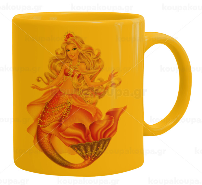 Barbie mermaid , Ceramic coffee mug yellow, 330ml