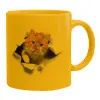 Cat cracked, Ceramic coffee mug yellow, 330ml