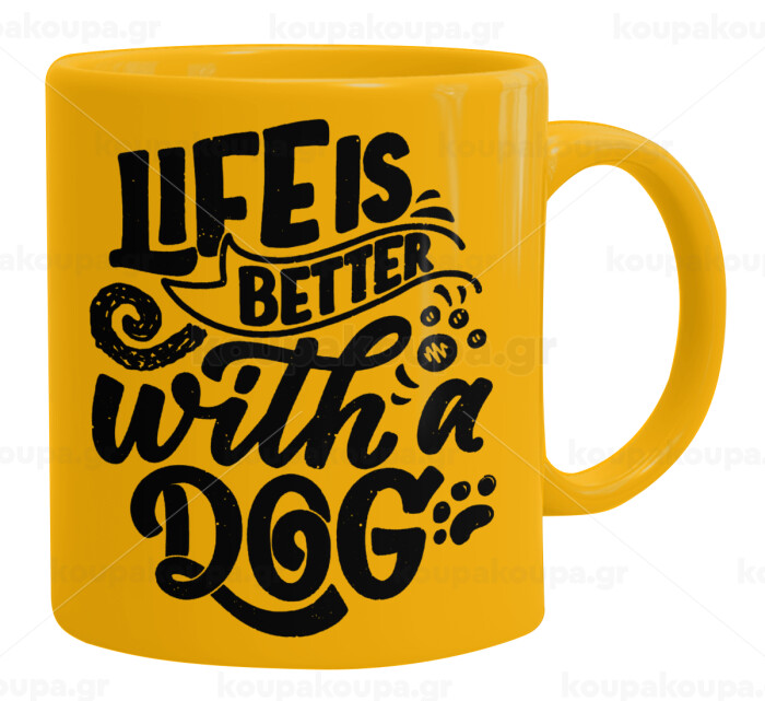 Life is better with a DOG, Ceramic coffee mug yellow, 330ml