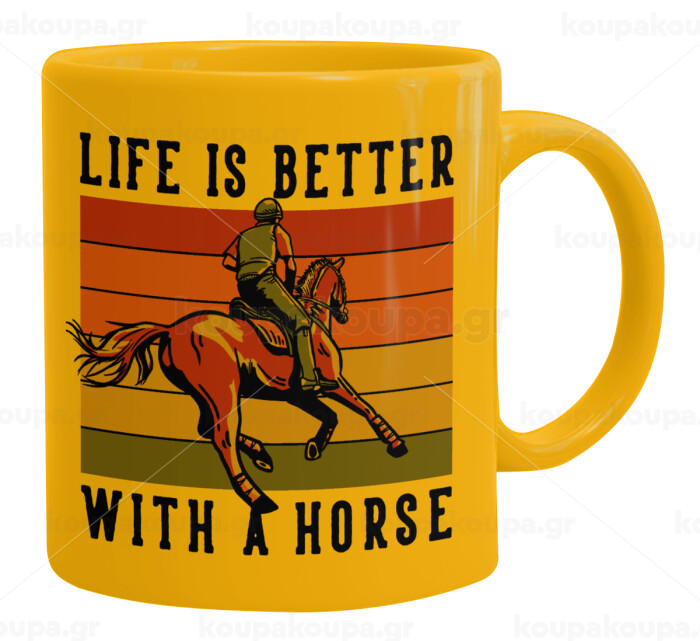 Life is Better with a Horse, Ceramic coffee mug yellow, 330ml