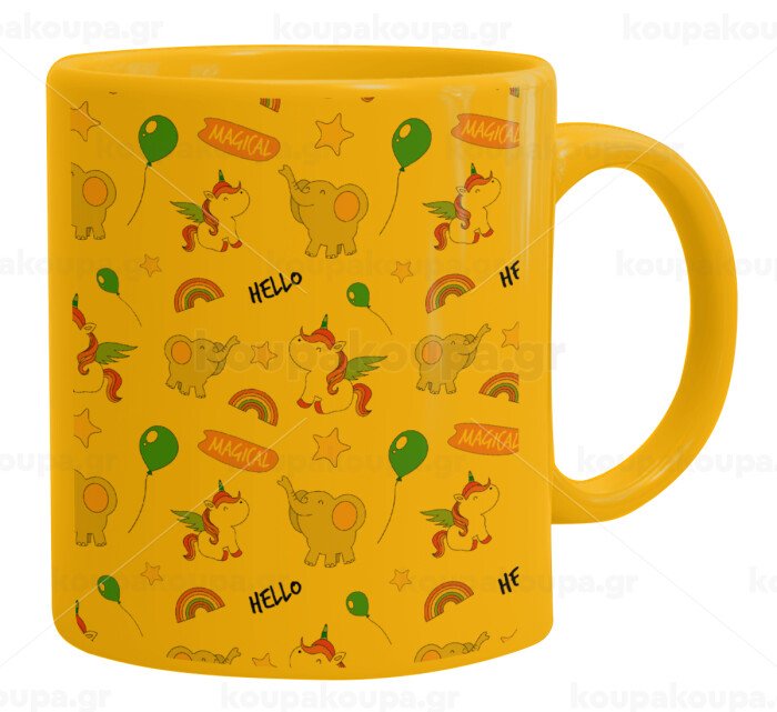 Happy Clouds Doodle, Ceramic coffee mug yellow, 330ml