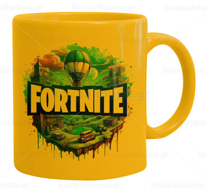 Fortnite land, Ceramic coffee mug yellow, 330ml