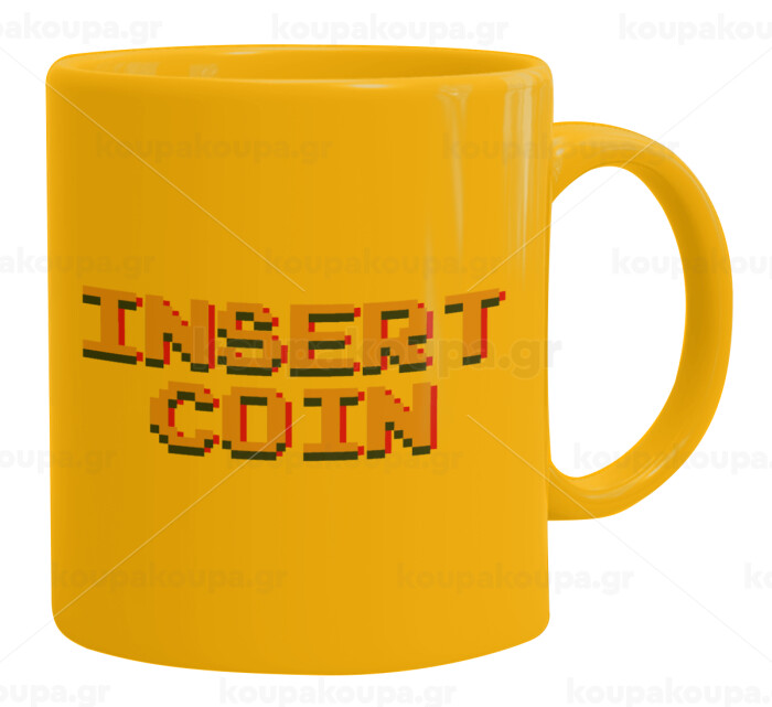 Insert coin!!!, Ceramic coffee mug yellow, 330ml