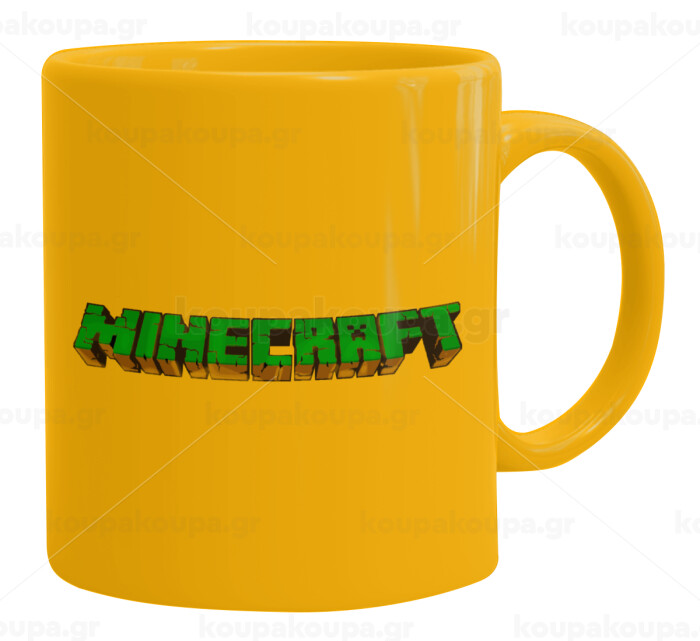 Minecraft logo green, Ceramic coffee mug yellow, 330ml