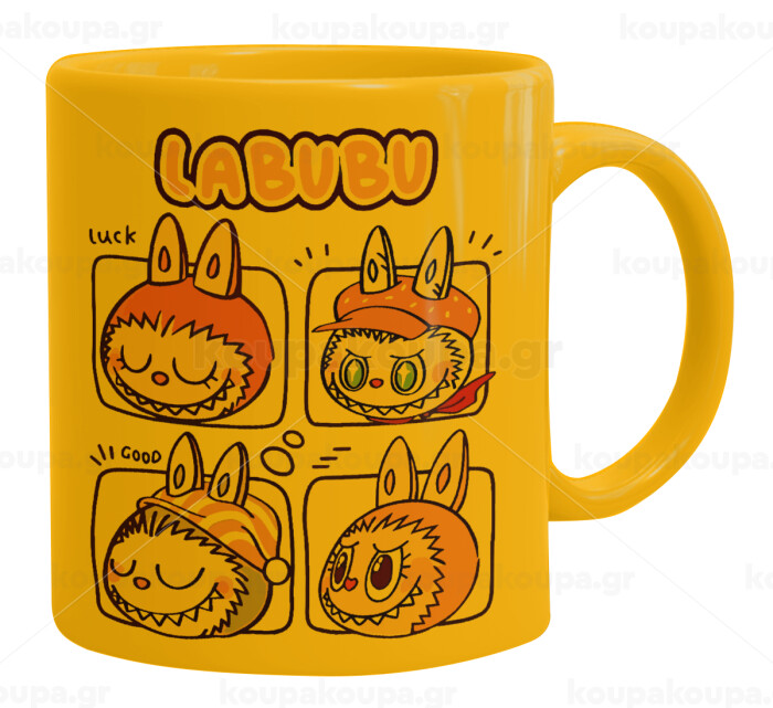 Labubu pink, Ceramic coffee mug yellow, 330ml
