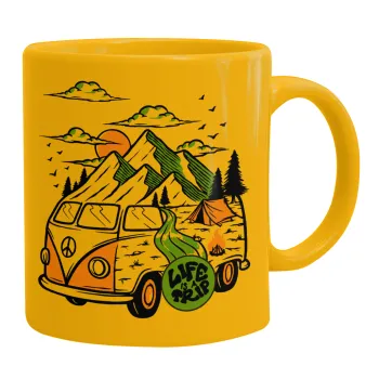 Life is a trip, Ceramic coffee mug yellow, 330ml