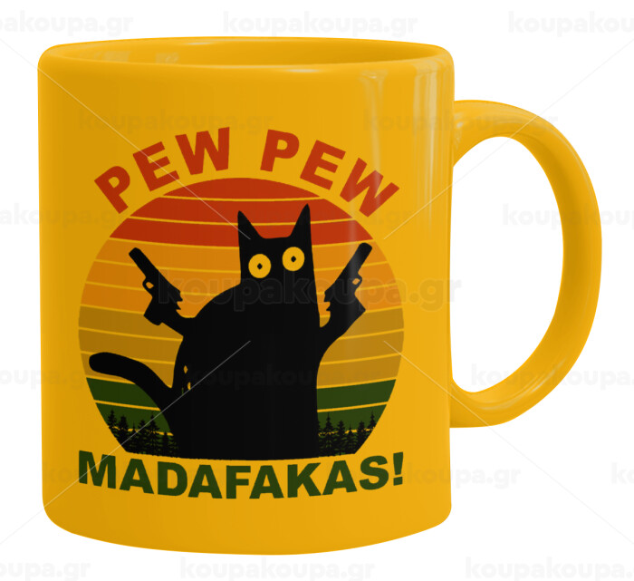 PEW PEW madafakas, Ceramic coffee mug yellow, 330ml