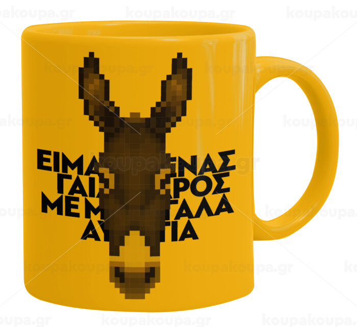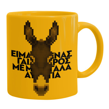 Είμαι ένας γάιδαρος με μεγάλα αυτιά., Ceramic coffee mug yellow, 330ml