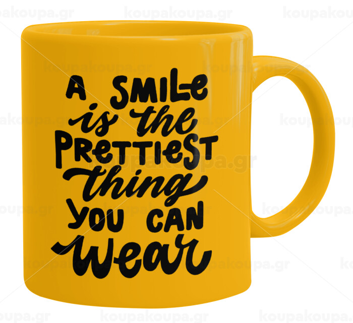 A smile is the prettiest thing you can wear, Ceramic coffee mug yellow, 330ml