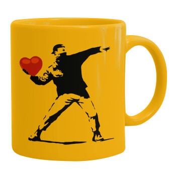 Banksy (The heart thrower), Ceramic coffee mug yellow, 330ml