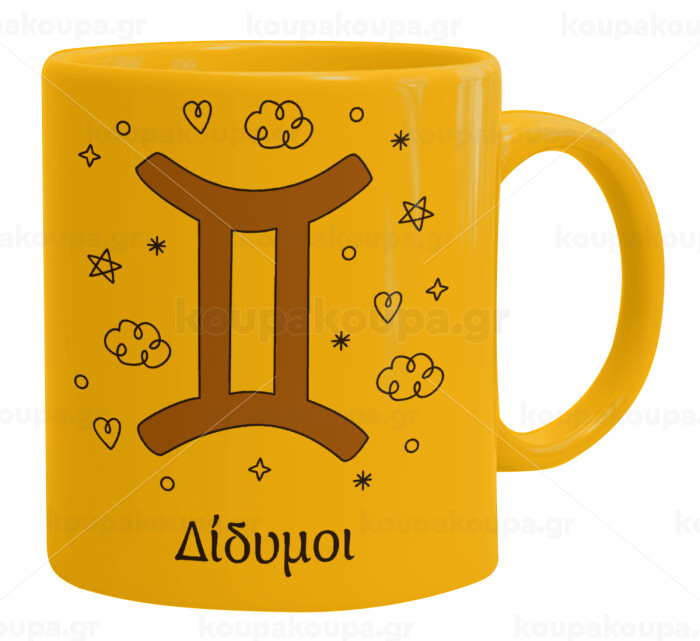 Ζώδια Δίδυμοι, Ceramic coffee mug yellow, 330ml
