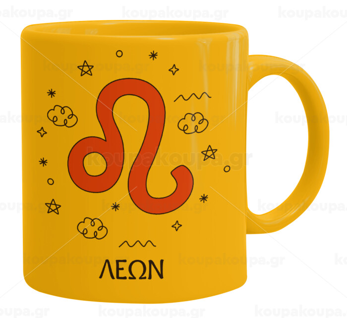 Ζώδια Λέων, Ceramic coffee mug yellow, 330ml
