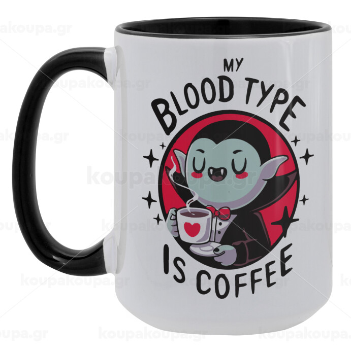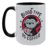My blood type is coffee, Κούπα Mega 15oz, κεραμική Μαύρη, 450ml