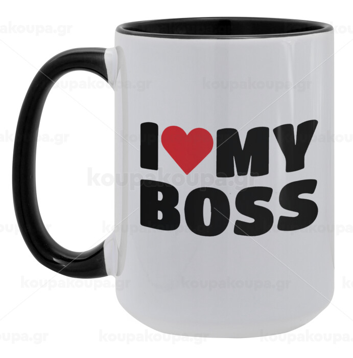 I LOVE MY BOSS, Κούπα Mega 15oz, κεραμική Μαύρη, 450ml