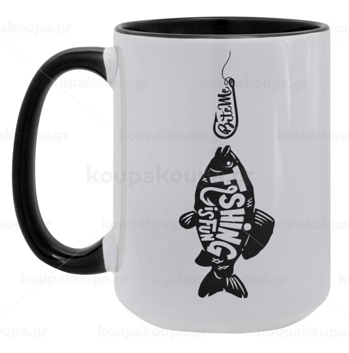 Fishing is fun, Κούπα Mega 15oz, κεραμική Μαύρη, 450ml