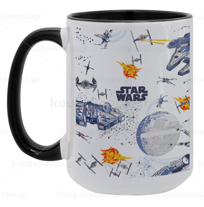 Star wars drawing, Κούπα Mega 15oz, κεραμική Μαύρη, 450ml