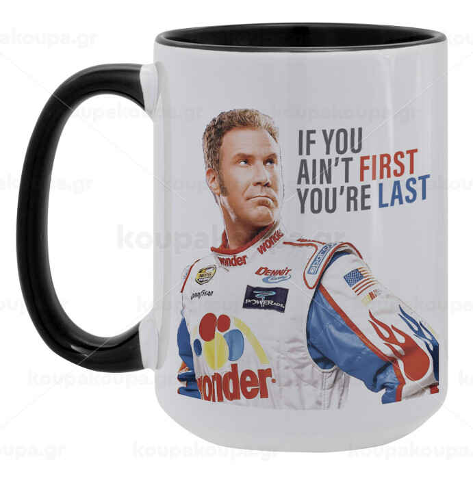 If You Ain't First You're Last Ricky Bobby, Talladega Nights, Κούπα Mega 15oz, κεραμική Μαύρη, 450ml