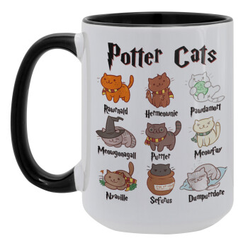 Potter Cats, Κούπα Mega 15oz, κεραμική Μαύρη, 450ml
